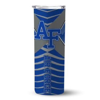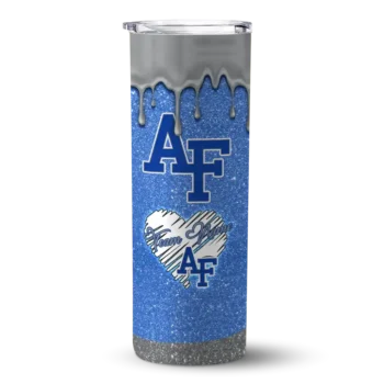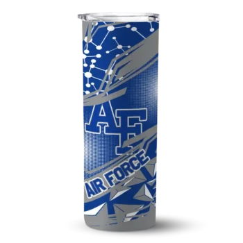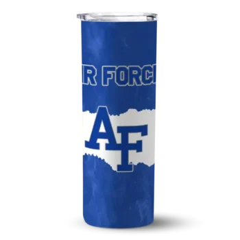 The Custom Air Force Falcons Helmet Clash Blue Skinny Tumbler tumbler is the perfect way to stay refreshed while showing off your pride for Air Force Falcons. With its double-wall insulation, your drinks stay at the right temperature for hours, whether you're enjoying a hot coffee or keeping your iced drink cold. What's inside? You’ll find 1 stainless steel tumbler, 1 clear lid, and 1 removable straw. It's the perfect blend of function and fan spirit! Ergonomically designed for comfort, made from durable stainless steel, and insulated to maintain your drink’s temperature, this tumbler is a must-have for any dedicated NCAA fan.