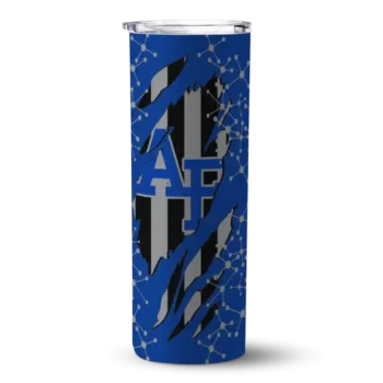 The Customized Air Force Falcons Star Pop Blue Black Skinny Tumbler tumbler is the perfect way to stay refreshed while showing off your pride for Air Force Falcons. With its double-wall insulation, your drinks stay at the right temperature for hours, whether you're enjoying a hot coffee or keeping your iced drink cold. What's inside? You’ll find 1 stainless steel tumbler, 1 clear lid, and 1 removable straw. It's the perfect blend of function and fan spirit! Ergonomically designed for comfort, made from durable stainless steel, and insulated to maintain your drink’s temperature, this tumbler is a must-have for any dedicated NCAA fan.