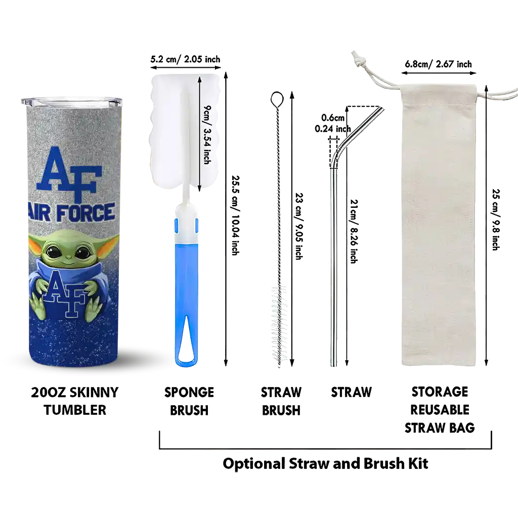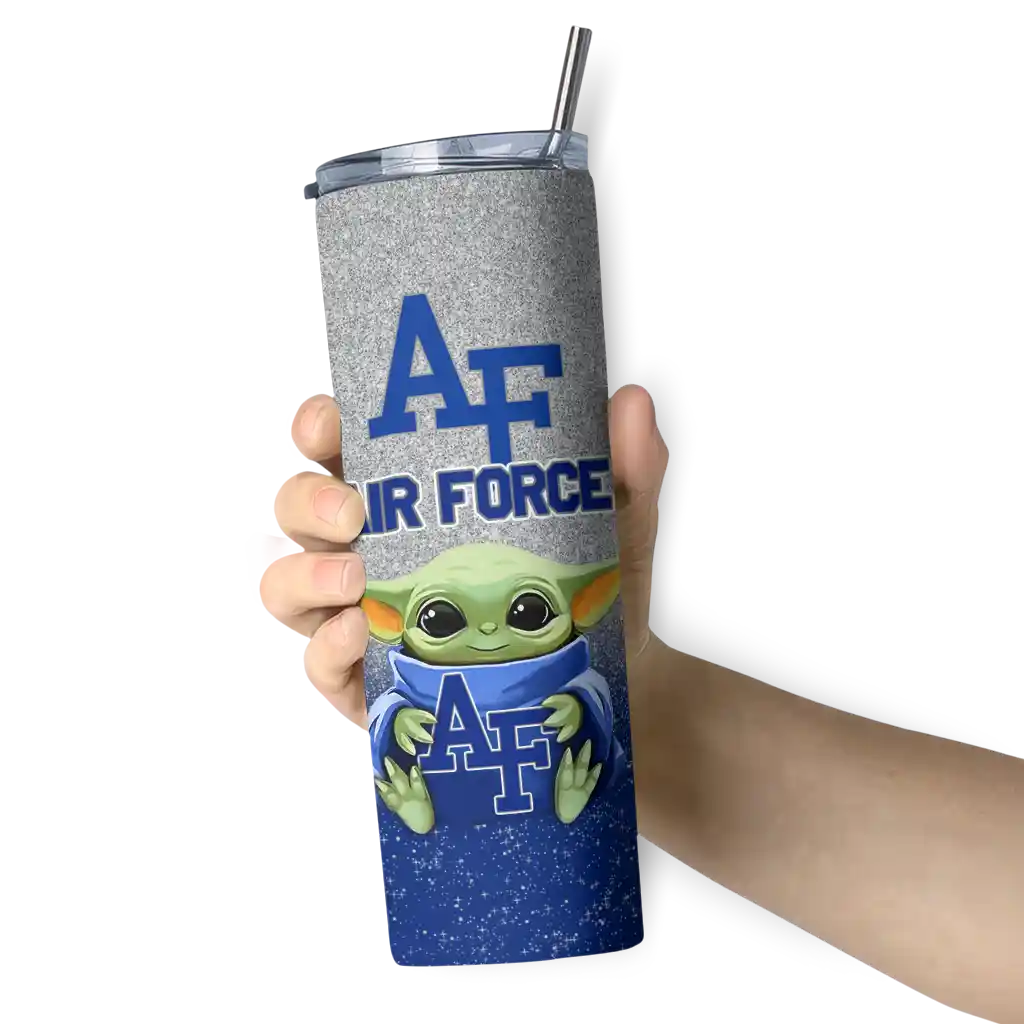 The Air Force Falcons Yoda Smile Blue Skinny Tumbler tumbler is the perfect way to stay refreshed while showing off your pride for Air Force Falcons. With its double-wall insulation, your drinks stay at the right temperature for hours, whether you're enjoying a hot coffee or keeping your iced drink cold. What's inside? You’ll find 1 stainless steel tumbler, 1 clear lid, and 1 removable straw. It's the perfect blend of function and fan spirit! Ergonomically designed for comfort, made from durable stainless steel, and insulated to maintain your drink’s temperature, this tumbler is a must-have for any dedicated NCAA fan.