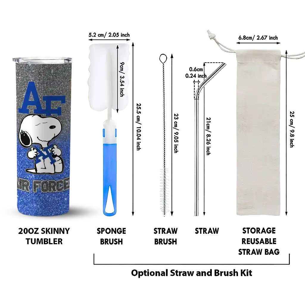 The Customized Air Force Falcons Snoopy Attitude Blue Skinny Tumbler tumbler is the perfect way to stay refreshed while showing off your pride for Air Force Falcons. With its double-wall insulation, your drinks stay at the right temperature for hours, whether you're enjoying a hot coffee or keeping your iced drink cold. What's inside? You’ll find 1 stainless steel tumbler, 1 clear lid, and 1 removable straw. It's the perfect blend of function and fan spirit! Ergonomically designed for comfort, made from durable stainless steel, and insulated to maintain your drink’s temperature, this tumbler is a must-have for any dedicated NCAA fan.