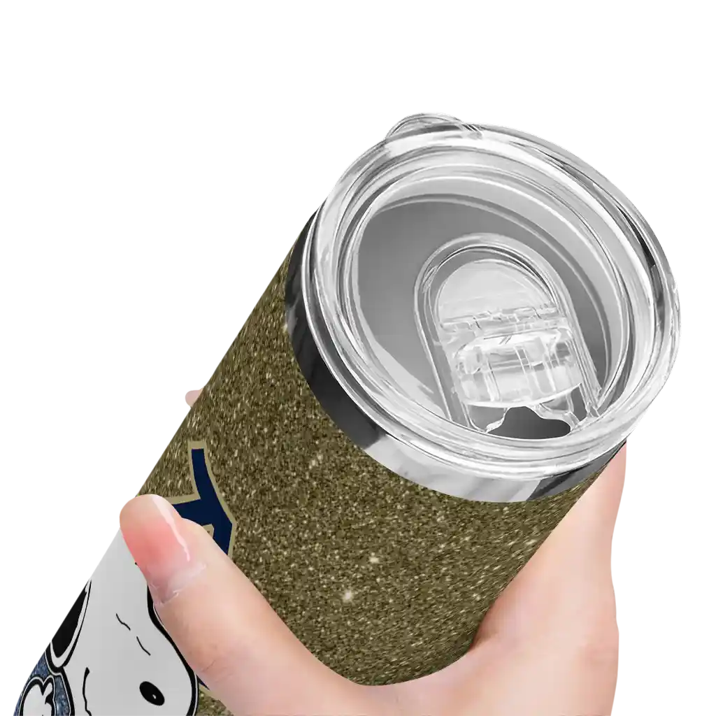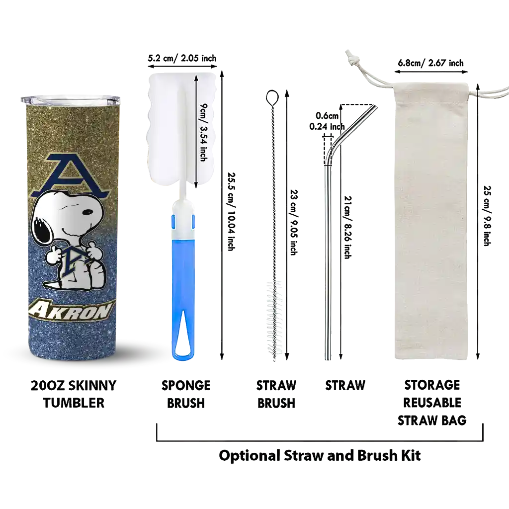 The Personalized Akron Zips Snoopy Attitude Blue Skinny Tumbler tumbler is the perfect way to stay refreshed while showing off your pride for Akron Zips. With its double-wall insulation, your drinks stay at the right temperature for hours, whether you're enjoying a hot coffee or keeping your iced drink cold. What's inside? You’ll find 1 stainless steel tumbler, 1 clear lid, and 1 removable straw. It's the perfect blend of function and fan spirit! Ergonomically designed for comfort, made from durable stainless steel, and insulated to maintain your drink’s temperature, this tumbler is a must-have for any dedicated NCAA fan.