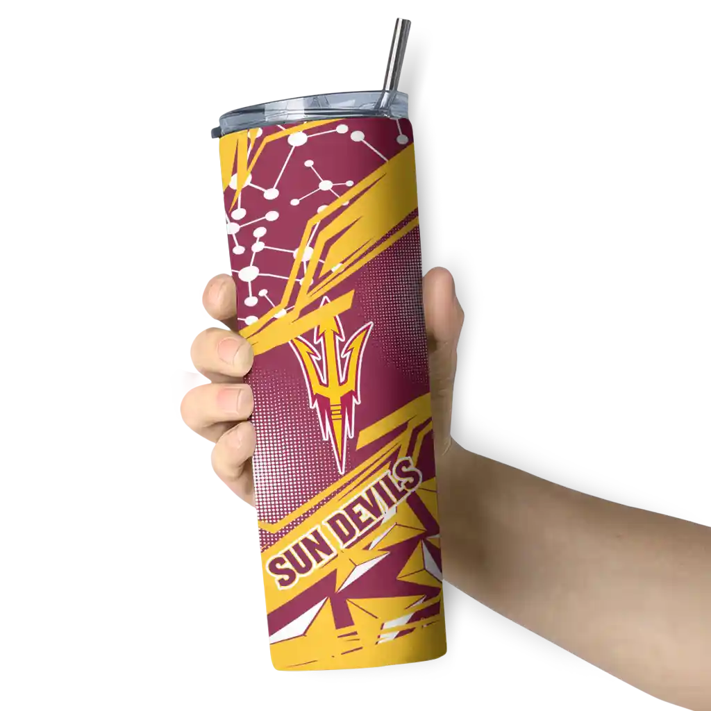 Introducing the Arizona State Sun Devils Tumblers from NCAA Fan Pro —where fan pride meets practical design. This slim tumbler is created for NCAA fans who want their drinks at the perfect temperature while displaying their school pride. The double-wall insulation ensures your hot beverages stay warm and your cold drinks stay chilled for hours, so you can enjoy your drinks at their best, whether you're at a game, tailgate, or on the go.