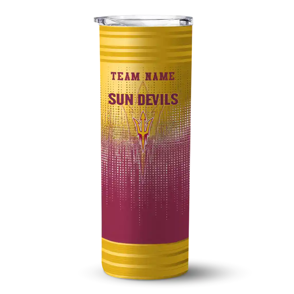 The Personalized Arizona State Sun Devils Swirl Texture Maroon Skinny Tumbler tumbler is the perfect way to stay refreshed while showing off your pride for Arizona State Sun Devils. With its double-wall insulation, your drinks stay at the right temperature for hours, whether you're enjoying a hot coffee or keeping your iced drink cold. What's inside? You’ll find 1 stainless steel tumbler, 1 clear lid, and 1 removable straw. It's the perfect blend of function and fan spirit! Ergonomically designed for comfort, made from durable stainless steel, and insulated to maintain your drink’s temperature, this tumbler is a must-have for any dedicated NCAA fan.