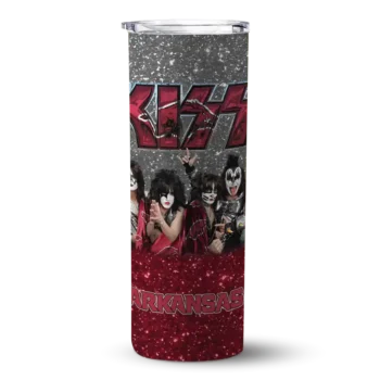 Custom Arkansas Razorbacks Kiss Band White Skinny Tumbler $36.95