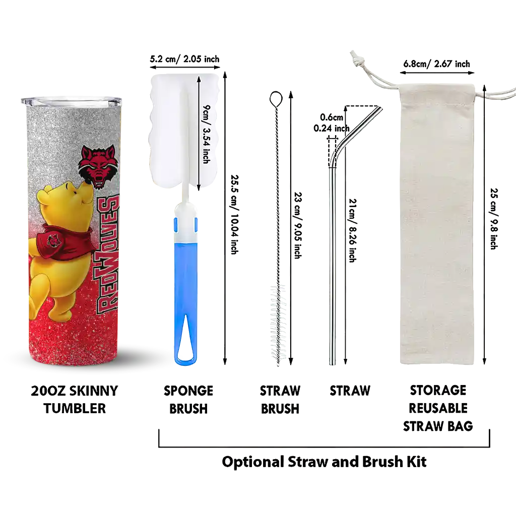 The Customized Arkansas State Red Wolves Winnie the Pooh Scarlet Gray Skinny Tumbler tumbler is the perfect way to stay refreshed while showing off your pride for Arkansas State Red Wolves. With its double-wall insulation, your drinks stay at the right temperature for hours, whether you're enjoying a hot coffee or keeping your iced drink cold. What's inside? You’ll find 1 stainless steel tumbler, 1 clear lid, and 1 removable straw. It's the perfect blend of function and fan spirit! Ergonomically designed for comfort, made from durable stainless steel, and insulated to maintain your drink’s temperature, this tumbler is a must-have for any dedicated NCAA fan.