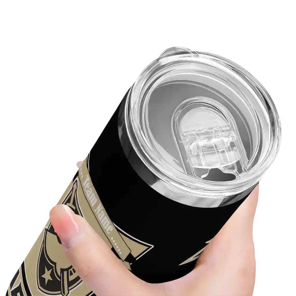 Custom Army Black Knights Helmet Belt Gold Black Skinny Tumbler