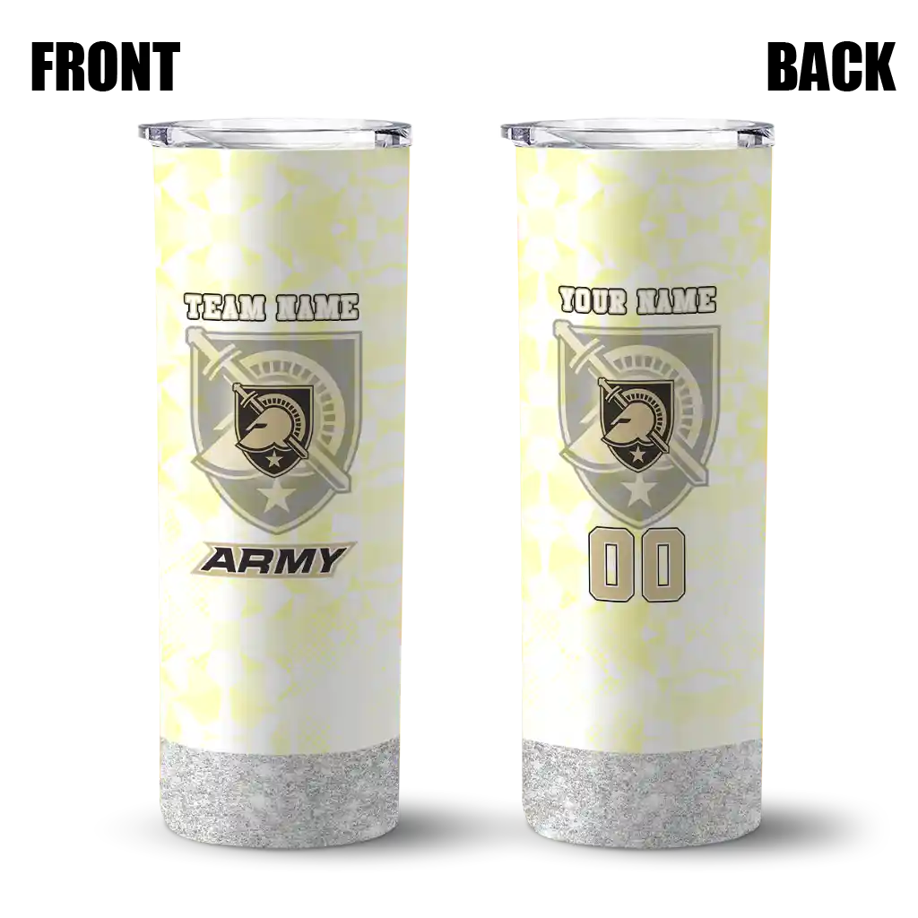 The Customized Army Black Knights Chevron Patch Gold Skinny Tumbler tumbler is the perfect way to stay refreshed while showing off your pride for Army Black Knights. With its double-wall insulation, your drinks stay at the right temperature for hours, whether you're enjoying a hot coffee or keeping your iced drink cold. What's inside? You’ll find 1 stainless steel tumbler, 1 clear lid, and 1 removable straw. It's the perfect blend of function and fan spirit! Ergonomically designed for comfort, made from durable stainless steel, and insulated to maintain your drink’s temperature, this tumbler is a must-have for any dedicated NCAA fan.