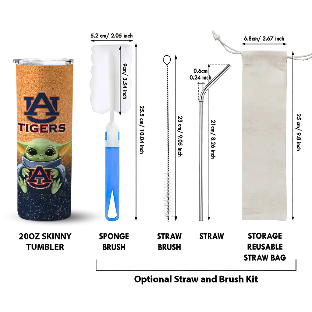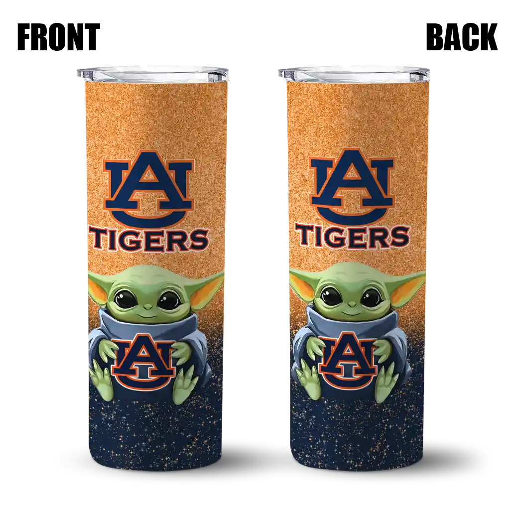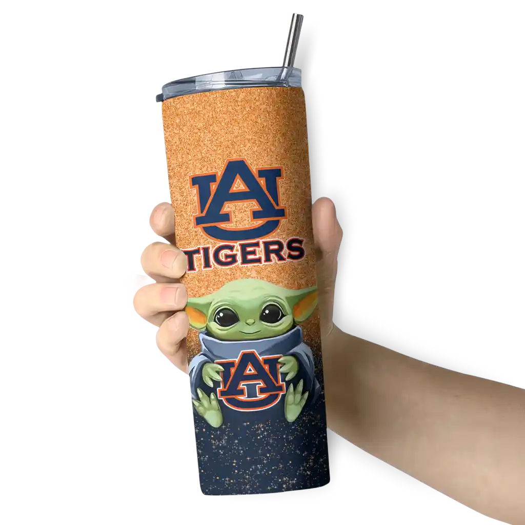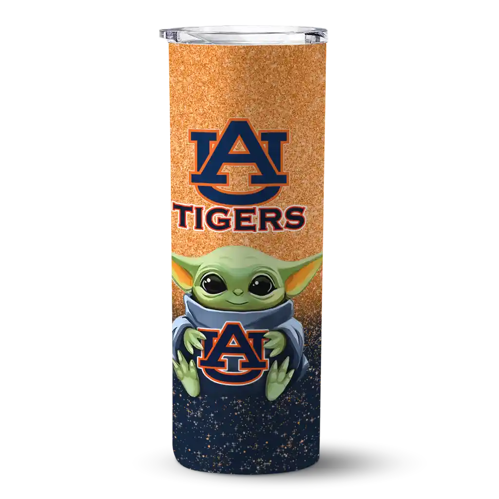 The Auburn Tigers Yoda Smile Navy Blue Skinny Tumbler tumbler is the perfect way to stay refreshed while showing off your pride for Auburn Tigers. With its double-wall insulation, your drinks stay at the right temperature for hours, whether you're enjoying a hot coffee or keeping your iced drink cold. What's inside? You’ll find 1 stainless steel tumbler, 1 clear lid, and 1 removable straw. It's the perfect blend of function and fan spirit! Ergonomically designed for comfort, made from durable stainless steel, and insulated to maintain your drink’s temperature, this tumbler is a must-have for any dedicated NCAA fan.