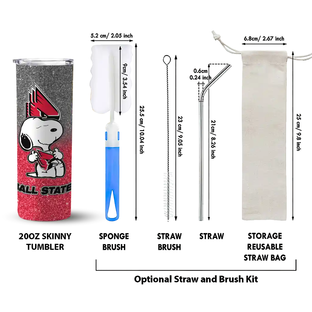 The Personalized Ball State Cardinals Snoopy Attitude Red Skinny Tumbler tumbler is the perfect way to stay refreshed while showing off your pride for Ball State Cardinals. With its double-wall insulation, your drinks stay at the right temperature for hours, whether you're enjoying a hot coffee or keeping your iced drink cold. What's inside? You’ll find 1 stainless steel tumbler, 1 clear lid, and 1 removable straw. It's the perfect blend of function and fan spirit! Ergonomically designed for comfort, made from durable stainless steel, and insulated to maintain your drink’s temperature, this tumbler is a must-have for any dedicated NCAA fan.