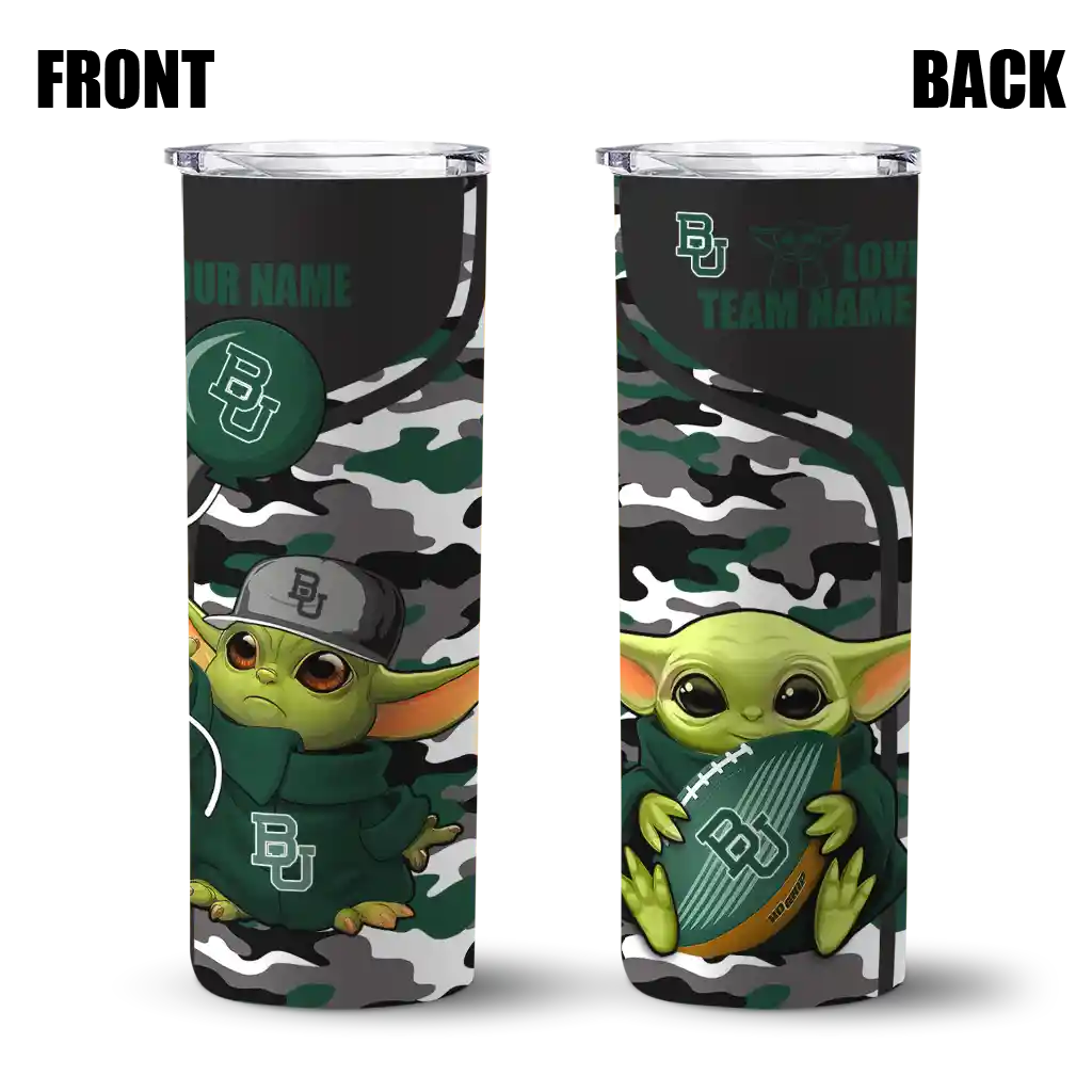 Custom Baylor Bears Yoda Camo Green Black Skinny Tumbler