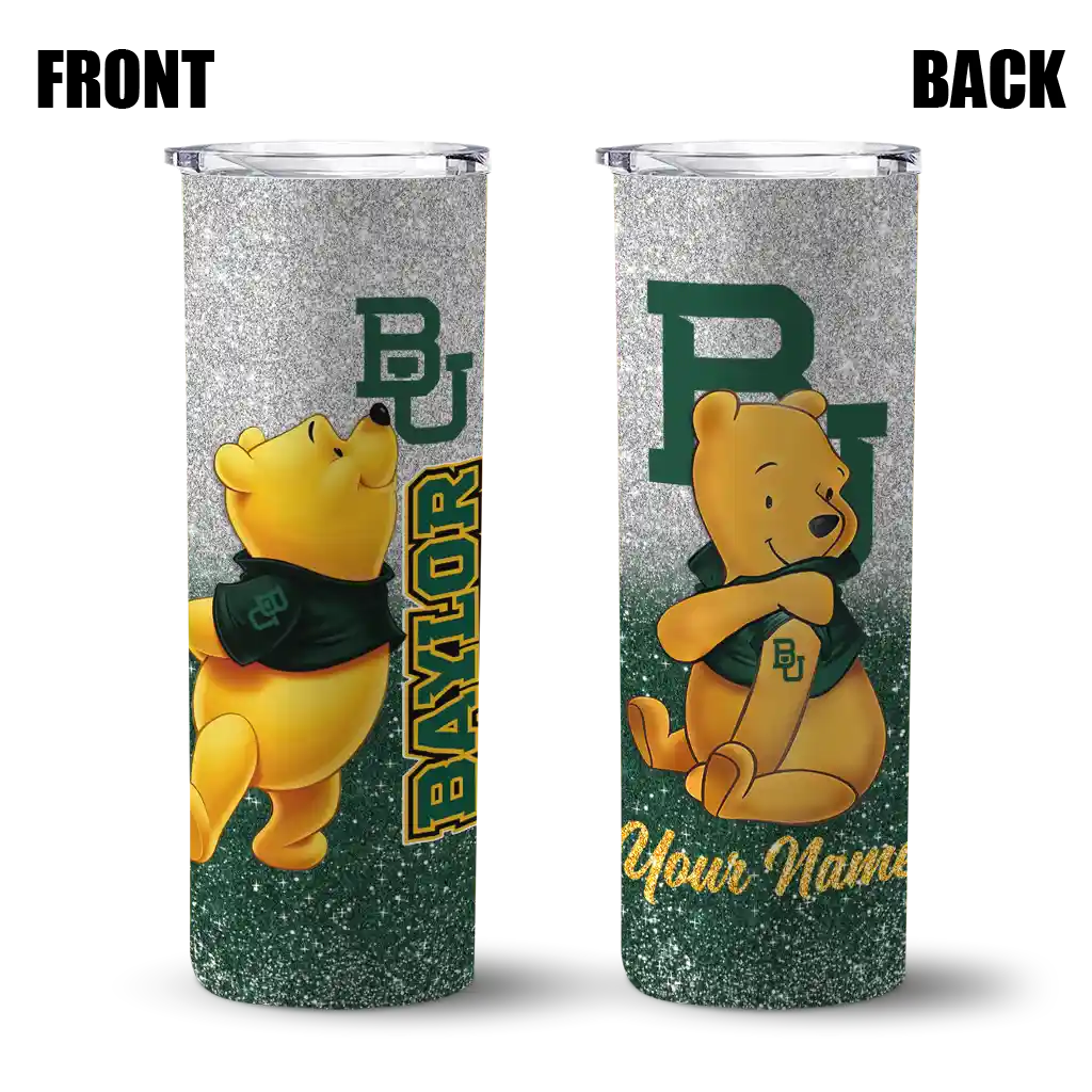Personalized Baylor Bears Winnie the Pooh Green Gray Skinny Tumbler