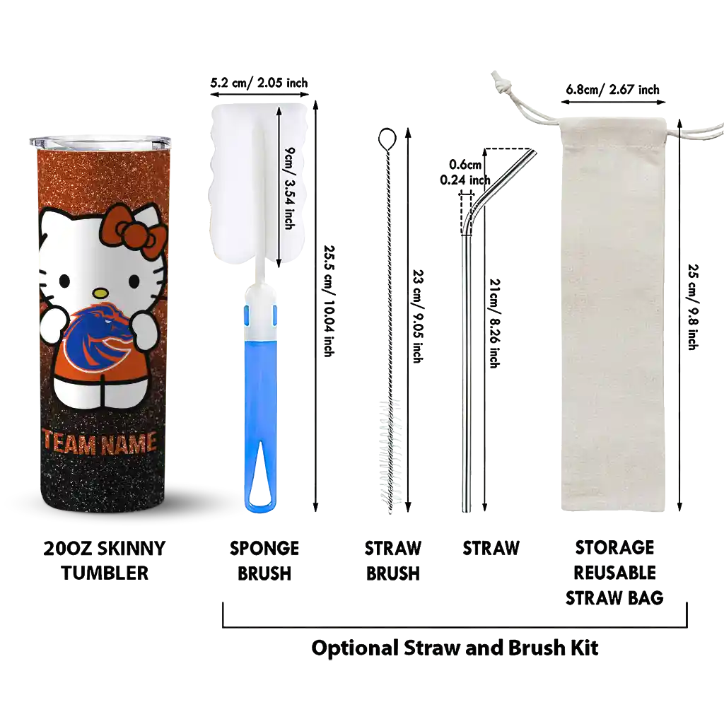 The Personalized Boise State Broncos Hello Kitty Orange Black Skinny Tumbler tumbler is the perfect way to stay refreshed while showing off your pride for Boise State Broncos. With its double-wall insulation, your drinks stay at the right temperature for hours, whether you're enjoying a hot coffee or keeping your iced drink cold. What's inside? You’ll find 1 stainless steel tumbler, 1 clear lid, and 1 removable straw. It's the perfect blend of function and fan spirit! Ergonomically designed for comfort, made from durable stainless steel, and insulated to maintain your drink’s temperature, this tumbler is a must-have for any dedicated NCAA fan.