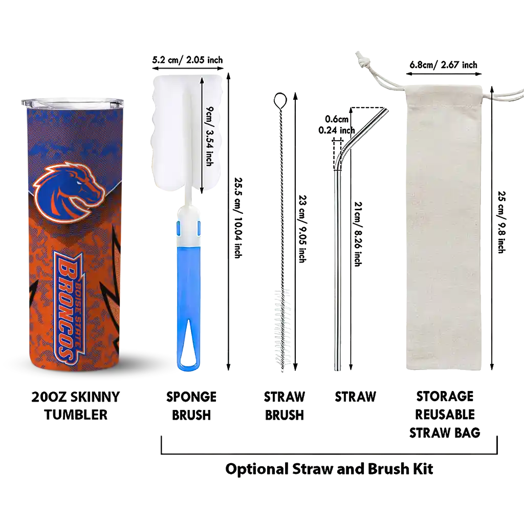 The Personalized Boise State Broncos Spiral Burst Print Orange Skinny Tumbler tumbler is the perfect way to stay refreshed while showing off your pride for Boise State Broncos. With its double-wall insulation, your drinks stay at the right temperature for hours, whether you're enjoying a hot coffee or keeping your iced drink cold. What's inside? You’ll find 1 stainless steel tumbler, 1 clear lid, and 1 removable straw. It's the perfect blend of function and fan spirit! Ergonomically designed for comfort, made from durable stainless steel, and insulated to maintain your drink’s temperature, this tumbler is a must-have for any dedicated NCAA fan.