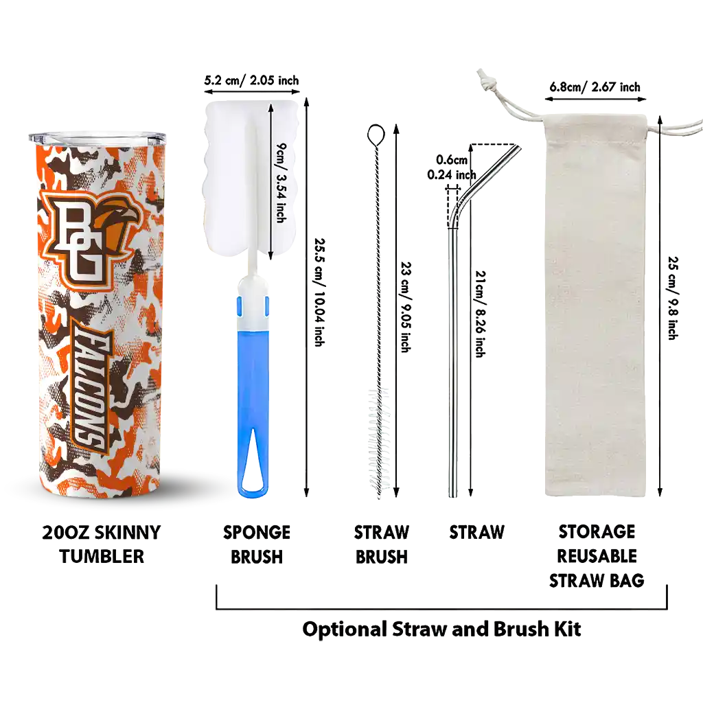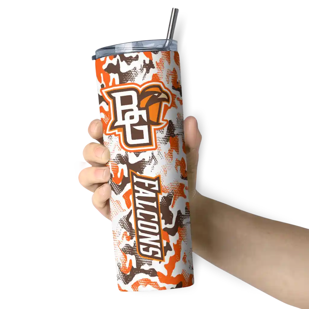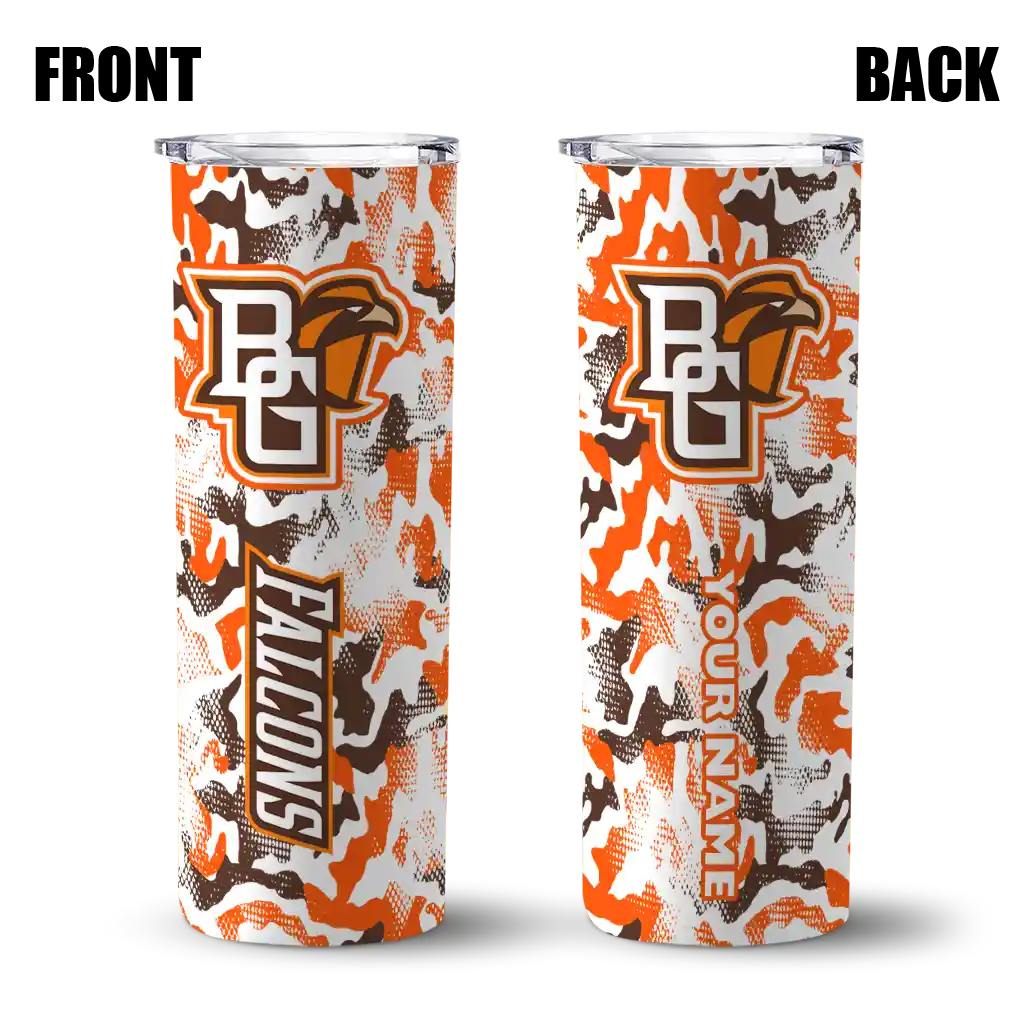 The Custom Bowling Green Falcons Hexagon Honeycomb Orange Black Skinny Tumbler tumbler is the perfect way to stay refreshed while showing off your pride for Bowling Green Falcons. With its double-wall insulation, your drinks stay at the right temperature for hours, whether you're enjoying a hot coffee or keeping your iced drink cold. What's inside? You’ll find 1 stainless steel tumbler, 1 clear lid, and 1 removable straw. It's the perfect blend of function and fan spirit! Ergonomically designed for comfort, made from durable stainless steel, and insulated to maintain your drink’s temperature, this tumbler is a must-have for any dedicated NCAA fan.