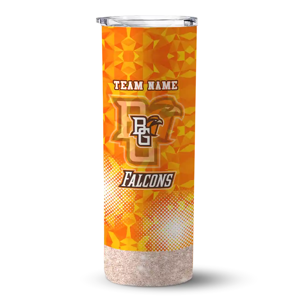 The Customized Bowling Green Falcons Starburst Tiles Orange Skinny Tumbler tumbler is the perfect way to stay refreshed while showing off your pride for Bowling Green Falcons. With its double-wall insulation, your drinks stay at the right temperature for hours, whether you're enjoying a hot coffee or keeping your iced drink cold. What's inside? You’ll find 1 stainless steel tumbler, 1 clear lid, and 1 removable straw. It's the perfect blend of function and fan spirit! Ergonomically designed for comfort, made from durable stainless steel, and insulated to maintain your drink’s temperature, this tumbler is a must-have for any dedicated NCAA fan.