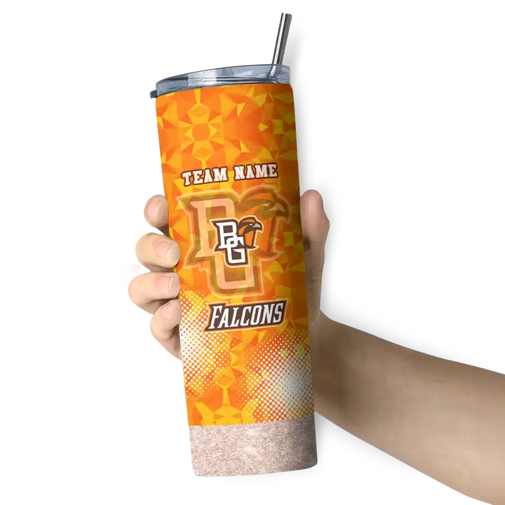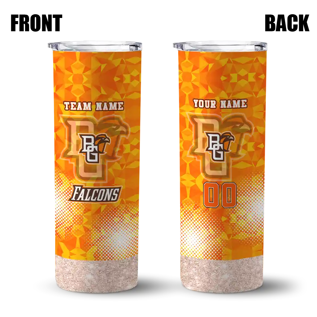 The Personalized Bowling Green Falcons Stacked Diamond Orange Skinny Tumbler tumbler is the perfect way to stay refreshed while showing off your pride for Bowling Green Falcons. With its double-wall insulation, your drinks stay at the right temperature for hours, whether you're enjoying a hot coffee or keeping your iced drink cold. What's inside? You’ll find 1 stainless steel tumbler, 1 clear lid, and 1 removable straw. It's the perfect blend of function and fan spirit! Ergonomically designed for comfort, made from durable stainless steel, and insulated to maintain your drink’s temperature, this tumbler is a must-have for any dedicated NCAA fan.
