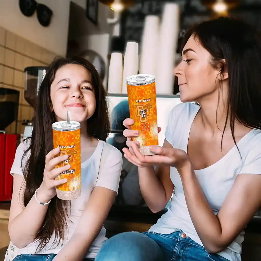 Customized Bowling Green Falcons Starburst Tiles Orange Skinny Tumbler