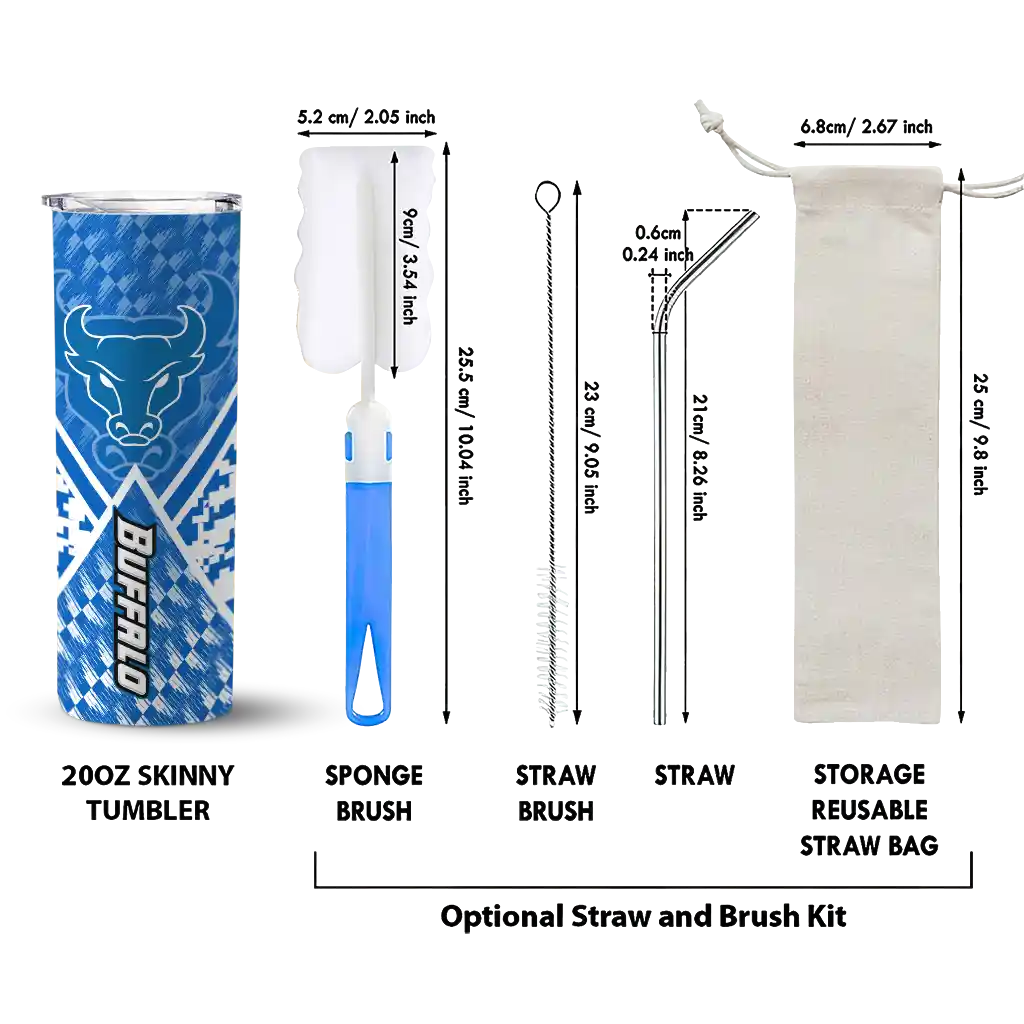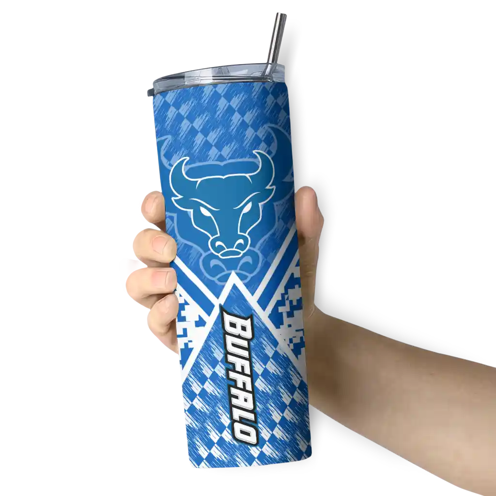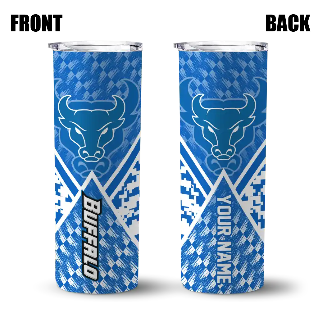 The Custom Buffalo Bulls Stacked Diamond Royal Blue Skinny Tumbler tumbler is the perfect way to stay refreshed while showing off your pride for Buffalo Bulls. With its double-wall insulation, your drinks stay at the right temperature for hours, whether you're enjoying a hot coffee or keeping your iced drink cold. What's inside? You’ll find 1 stainless steel tumbler, 1 clear lid, and 1 removable straw. It's the perfect blend of function and fan spirit! Ergonomically designed for comfort, made from durable stainless steel, and insulated to maintain your drink’s temperature, this tumbler is a must-have for any dedicated NCAA fan.