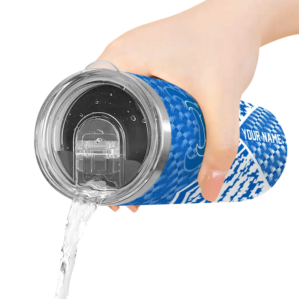 No question about it—the Customized Buffalo Bulls Arrow Armor Royal Blue Black Curved Tumbler is the ultimate way to stay refreshed while rocking your Buffalo Bulls pride. From the stadium to your tailgate, or just chilling at home, this sleek tumbler makes sure you stay hydrated in style. What’s in the box? A stainless steel tumbler, clear lid, and removable straw—all the essentials for keeping your favorite drinks on point!