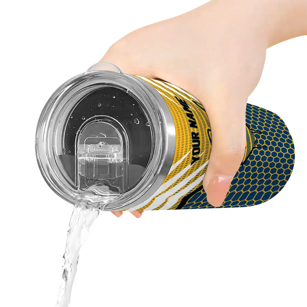 The Custom California Golden Bears Chevron Stripes Blue Skinny Tumbler tumbler is the perfect way to stay refreshed while showing off your pride for California Golden Bears. With its double-wall insulation, your drinks stay at the right temperature for hours, whether you're enjoying a hot coffee or keeping your iced drink cold. What's inside? You’ll find 1 stainless steel tumbler, 1 clear lid, and 1 removable straw. It's the perfect blend of function and fan spirit! Ergonomically designed for comfort, made from durable stainless steel, and insulated to maintain your drink’s temperature, this tumbler is a must-have for any dedicated NCAA fan.