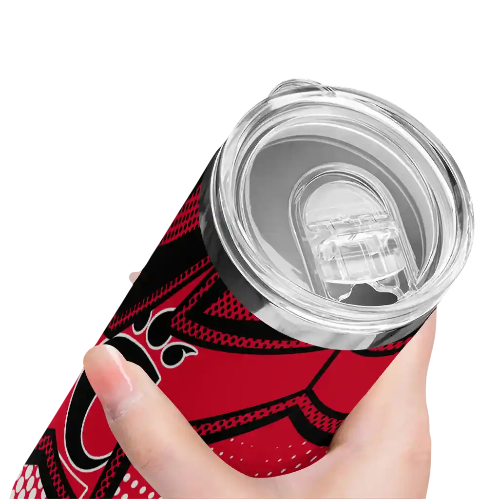 The Customized Cincinnati Bearcats Torn Band Red White Skinny Tumbler tumbler is the perfect way to stay refreshed while showing off your pride for Cincinnati Bearcats. With its double-wall insulation, your drinks stay at the right temperature for hours, whether you're enjoying a hot coffee or keeping your iced drink cold. What's inside? You’ll find 1 stainless steel tumbler, 1 clear lid, and 1 removable straw. It's the perfect blend of function and fan spirit! Ergonomically designed for comfort, made from durable stainless steel, and insulated to maintain your drink’s temperature, this tumbler is a must-have for any dedicated NCAA fan.
