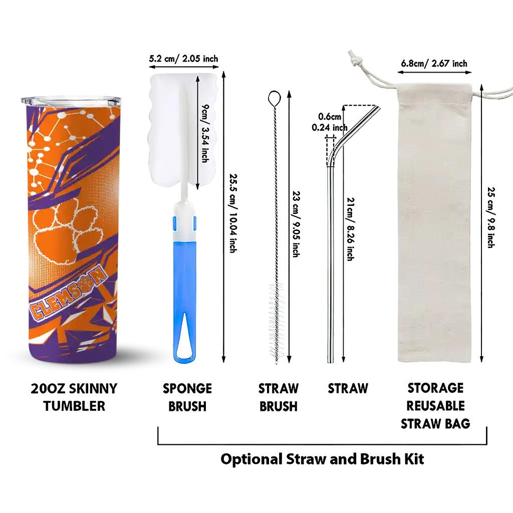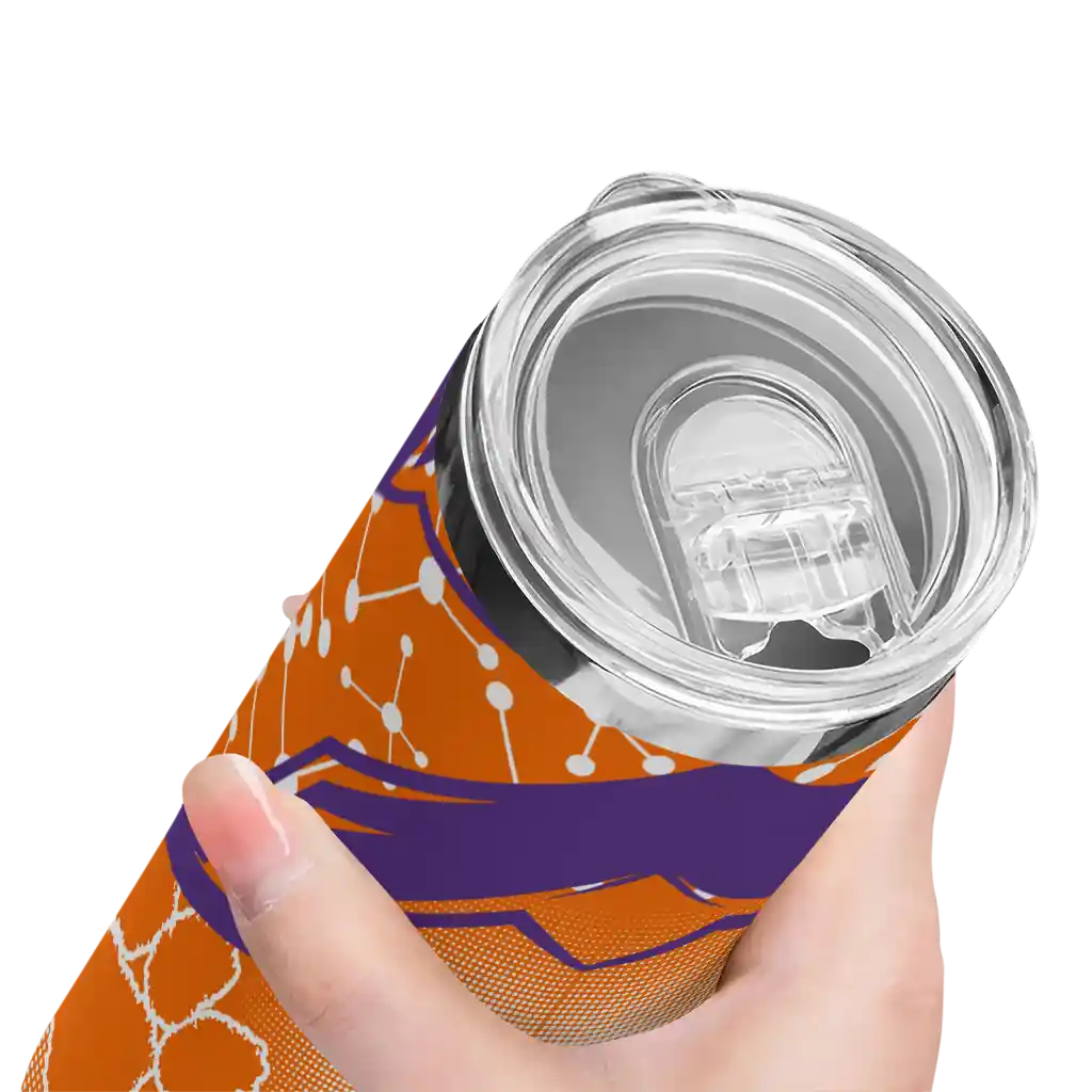 The Custom Clemson Tigers Helmet Clash Orange Skinny Tumbler tumbler is the perfect way to stay refreshed while showing off your pride for Clemson Tigers. With its double-wall insulation, your drinks stay at the right temperature for hours, whether you're enjoying a hot coffee or keeping your iced drink cold. What's inside? You’ll find 1 stainless steel tumbler, 1 clear lid, and 1 removable straw. It's the perfect blend of function and fan spirit! Ergonomically designed for comfort, made from durable stainless steel, and insulated to maintain your drink’s temperature, this tumbler is a must-have for any dedicated NCAA fan.