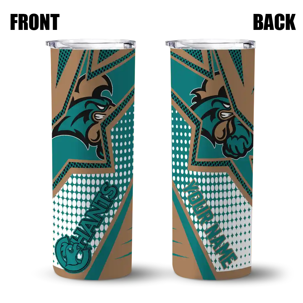 Made from premium stainless steel, this tumbler is built to last. The bold Coastal Carolina Chanticleers logo proudly represents your team, while the ergonomic design fits comfortably in your hand for easy carrying. Whether you're cheering in the stands, catching up with friends, or just out and about, this tumbler is the perfect fan accessory, combining style and function to keep you hydrated in true NCAA spirit.