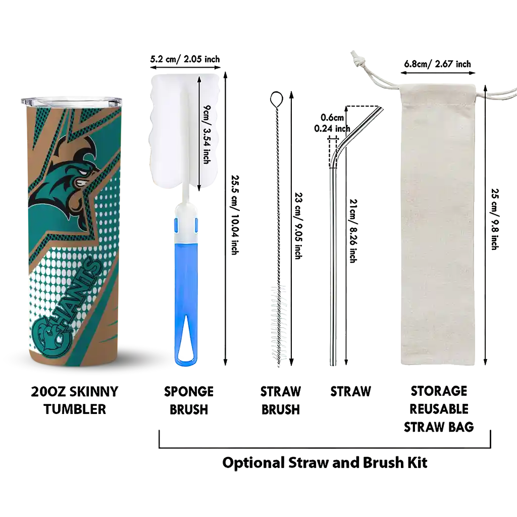 Introducing the Coastal Carolina Chanticleers Tumblers  from NCAA Fan Pro —where fan pride meets practical design. This slim tumbler is created for NCAA fans who want their drinks at the perfect temperature while displaying their school pride. The double-wall insulation ensures your hot beverages stay warm and your cold drinks stay chilled for hours, so you can enjoy your drinks at their best, whether you're at a game, tailgate, or on the go.