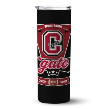 The Custom Colgate Raiders Helmet Belt Maroon Black Skinny Tumbler tumbler is the perfect way to stay refreshed while showing off your pride for Colgate Raiders. With its double-wall insulation, your drinks stay at the right temperature for hours, whether you're enjoying a hot coffee or keeping your iced drink cold. What's inside? You’ll find 1 stainless steel tumbler, 1 clear lid, and 1 removable straw. It's the perfect blend of function and fan spirit! Ergonomically designed for comfort, made from durable stainless steel, and insulated to maintain your drink’s temperature, this tumbler is a must-have for any dedicated NCAA fan.