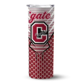 The Custom Colgate Raiders Monogram Burst Maroon White Skinny Tumbler tumbler is the perfect way to stay refreshed while showing off your pride for Colgate Raiders. With its double-wall insulation, your drinks stay at the right temperature for hours, whether you're enjoying a hot coffee or keeping your iced drink cold. What's inside? You’ll find 1 stainless steel tumbler, 1 clear lid, and 1 removable straw. It's the perfect blend of function and fan spirit! Ergonomically designed for comfort, made from durable stainless steel, and insulated to maintain your drink’s temperature, this tumbler is a must-have for any dedicated NCAA fan.