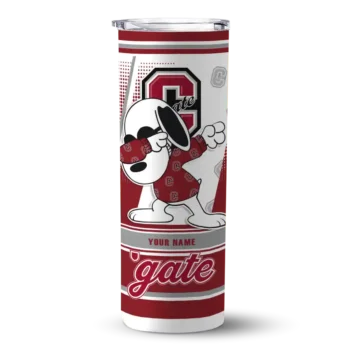 The Custom Colgate Raiders Snoopy Dog Maroon White Skinny Tumbler tumbler is the perfect way to stay refreshed while showing off your pride for Colgate Raiders. With its double-wall insulation, your drinks stay at the right temperature for hours, whether you're enjoying a hot coffee or keeping your iced drink cold. What's inside? You’ll find 1 stainless steel tumbler, 1 clear lid, and 1 removable straw. It's the perfect blend of function and fan spirit! Ergonomically designed for comfort, made from durable stainless steel, and insulated to maintain your drink’s temperature, this tumbler is a must-have for any dedicated NCAA fan.