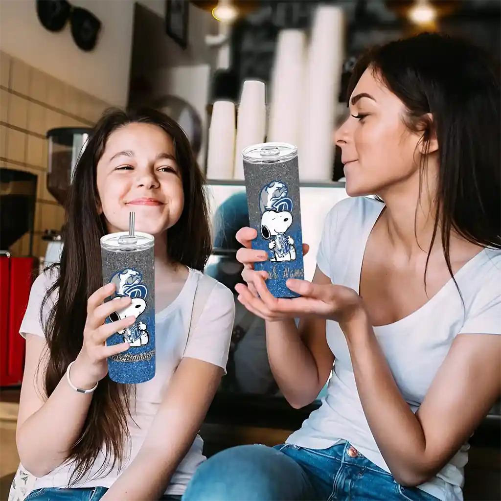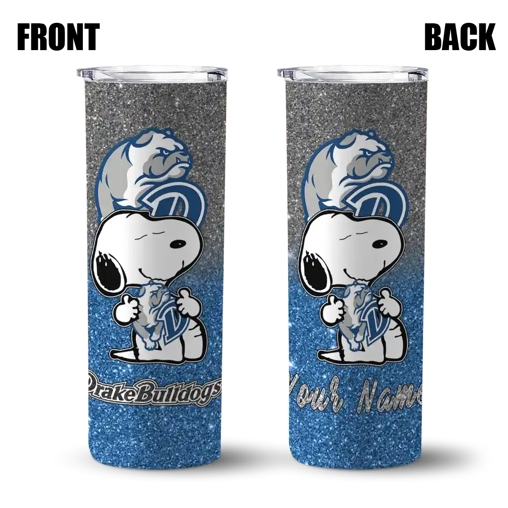 Personalized Drake Bulldogs Snoopy Attitude Blue Skinny Tumbler