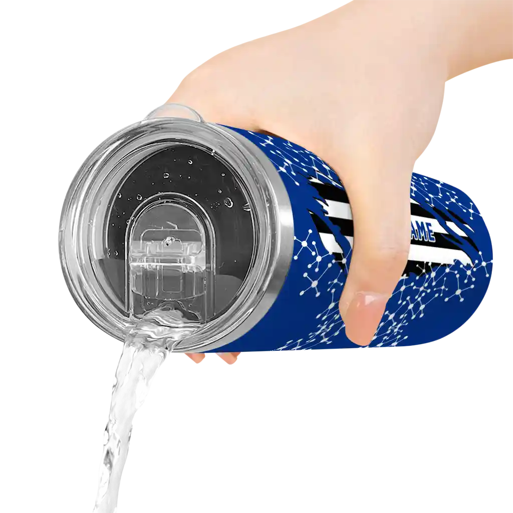 The Custom Duke Blue Devils Star Pop Blue Black Skinny Tumbler tumbler is the perfect way to stay refreshed while showing off your pride for Duke Blue Devils. With its double-wall insulation, your drinks stay at the right temperature for hours, whether you're enjoying a hot coffee or keeping your iced drink cold. What's inside? You’ll find 1 stainless steel tumbler, 1 clear lid, and 1 removable straw. It's the perfect blend of function and fan spirit! Ergonomically designed for comfort, made from durable stainless steel, and insulated to maintain your drink’s temperature, this tumbler is a must-have for any dedicated NCAA fan.