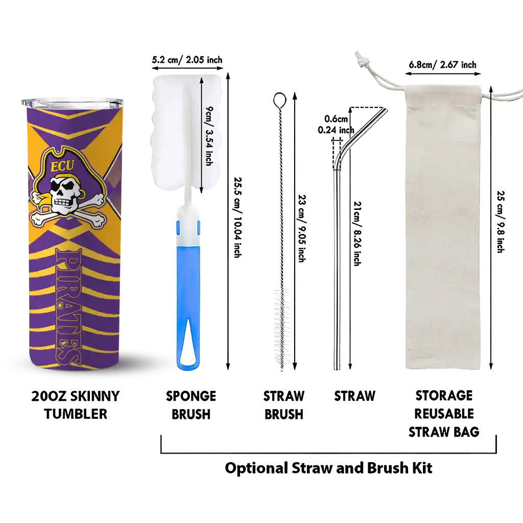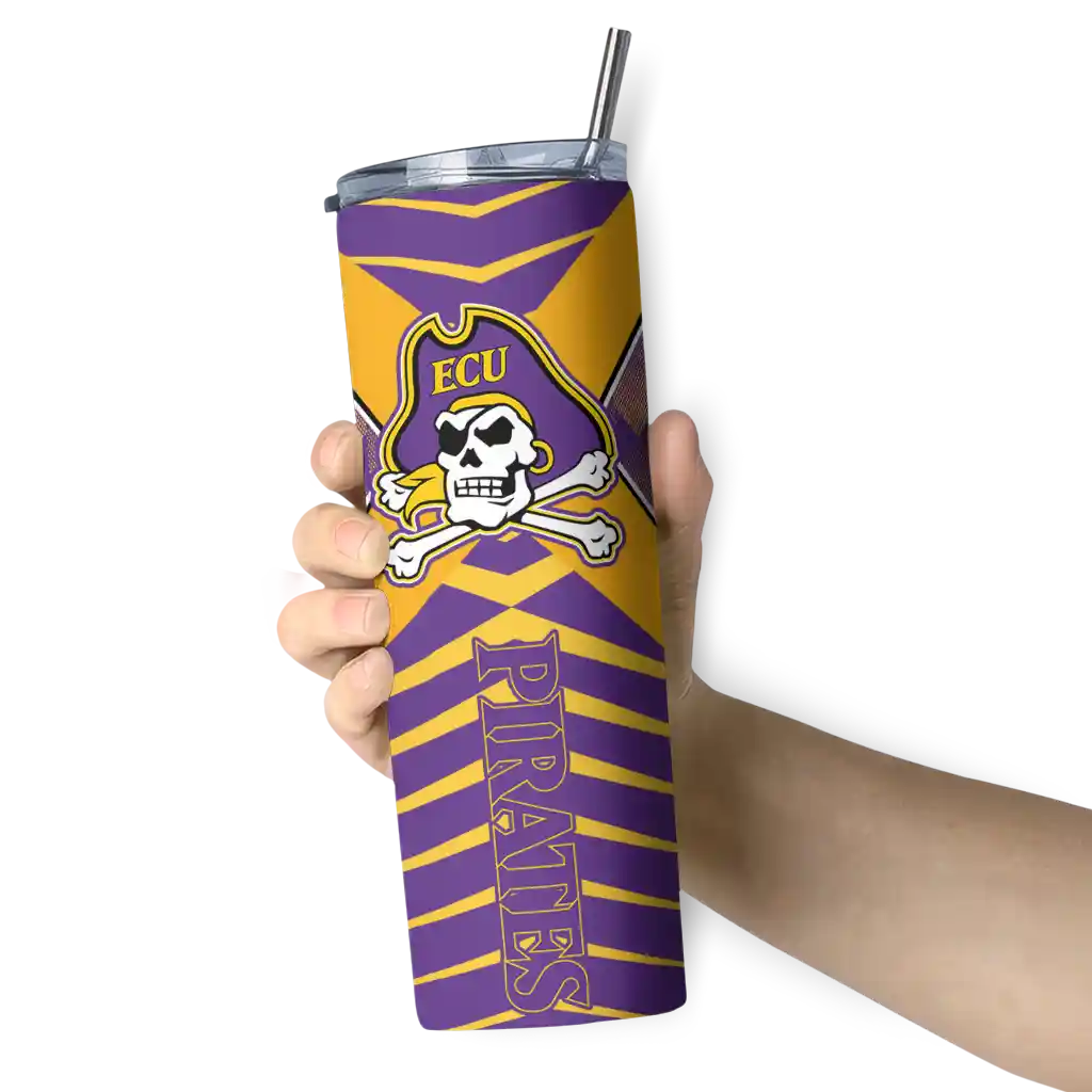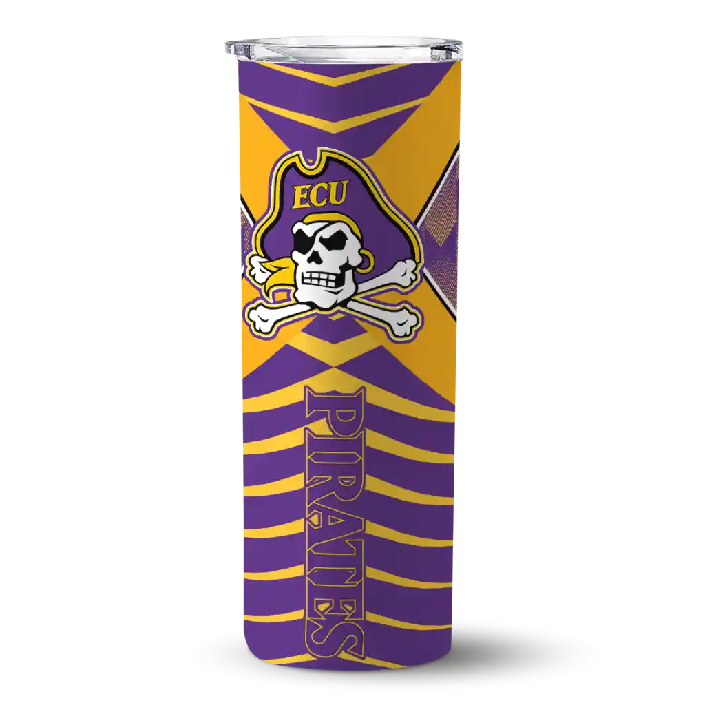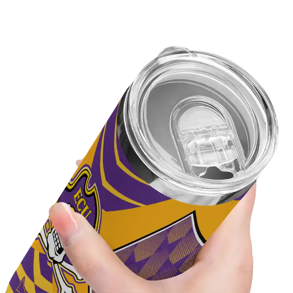 Introducing the East Carolina Pirates Tumblers from NCAA Fan Pro —where fan pride meets practical design. This slim tumbler is created for NCAA fans who want their drinks at the perfect temperature while displaying their school pride. The double-wall insulation ensures your hot beverages stay warm and your cold drinks stay chilled for hours, so you can enjoy your drinks at their best, whether you're at a game, tailgate, or on the go.