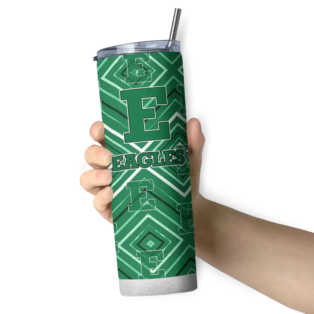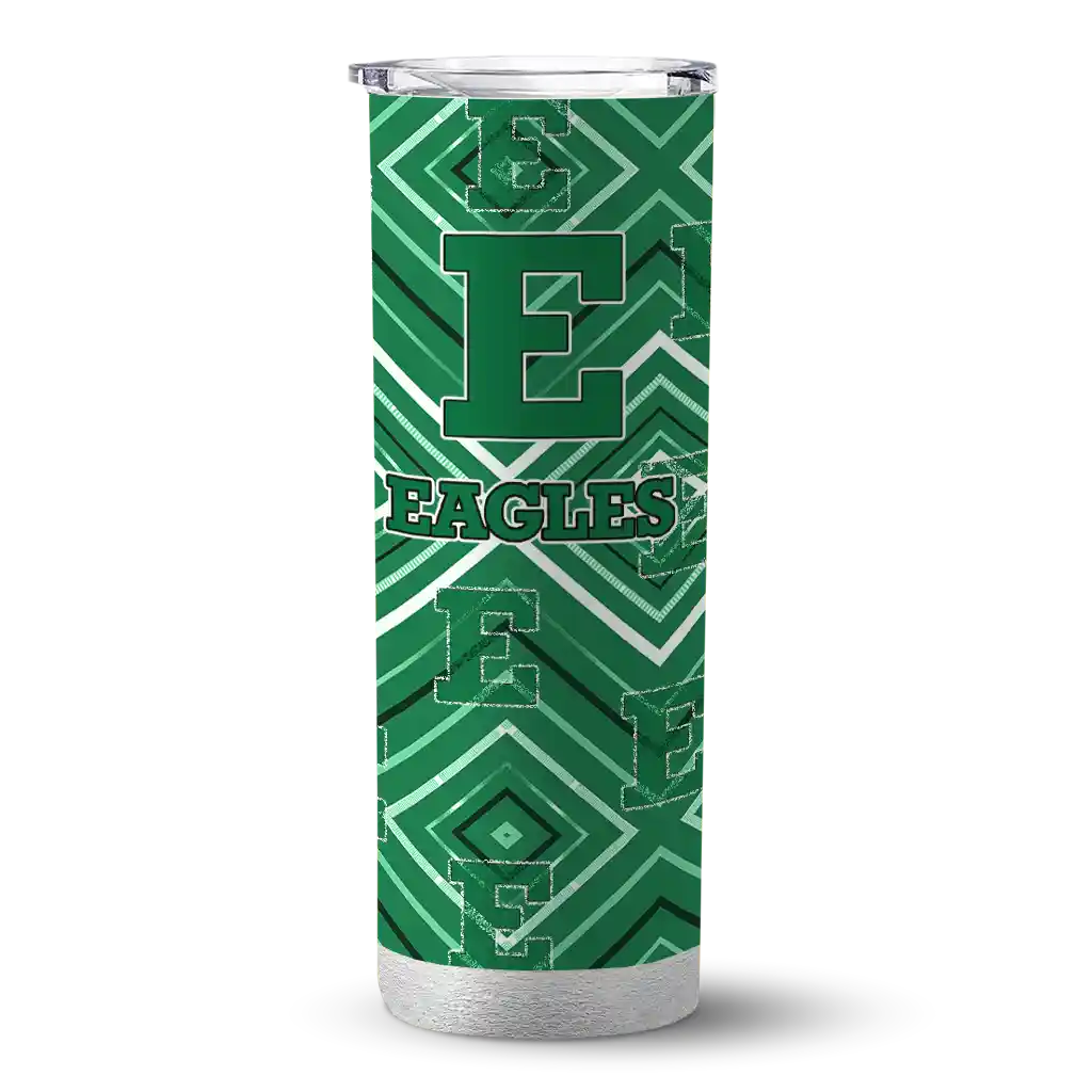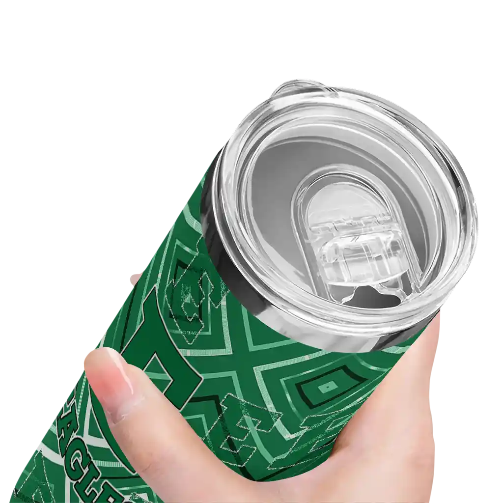 The Custom Eastern Michigan Eagles Chevron Patch Green Skinny Tumbler tumbler is the perfect way to stay refreshed while showing off your pride for Eastern Michigan Eagles. With its double-wall insulation, your drinks stay at the right temperature for hours, whether you're enjoying a hot coffee or keeping your iced drink cold. What's inside? You’ll find 1 stainless steel tumbler, 1 clear lid, and 1 removable straw. It's the perfect blend of function and fan spirit! Ergonomically designed for comfort, made from durable stainless steel, and insulated to maintain your drink’s temperature, this tumbler is a must-have for any dedicated NCAA fan.
