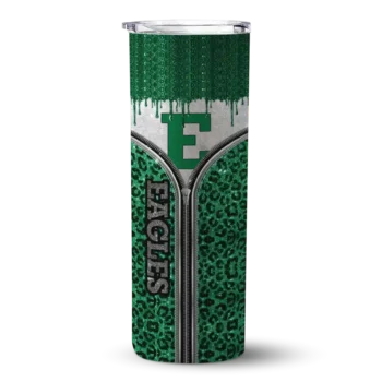 The Custom Eastern Michigan Eagles Chevron Patch Green Skinny Tumbler tumbler is the perfect way to stay refreshed while showing off your pride for Eastern Michigan Eagles. With its double-wall insulation, your drinks stay at the right temperature for hours, whether you're enjoying a hot coffee or keeping your iced drink cold. What's inside? You’ll find 1 stainless steel tumbler, 1 clear lid, and 1 removable straw. It's the perfect blend of function and fan spirit! Ergonomically designed for comfort, made from durable stainless steel, and insulated to maintain your drink’s temperature, this tumbler is a must-have for any dedicated NCAA fan.