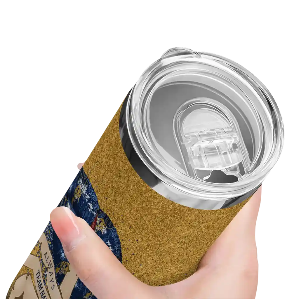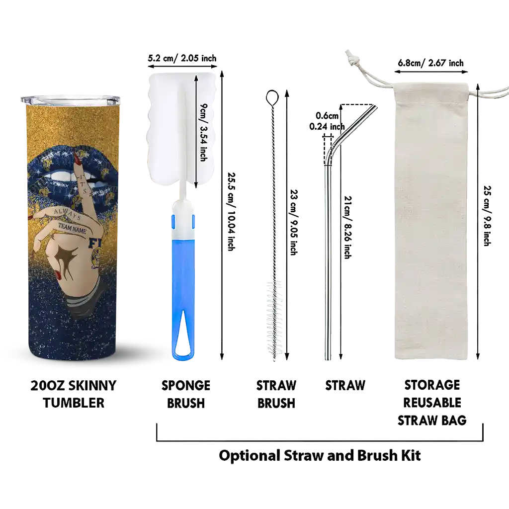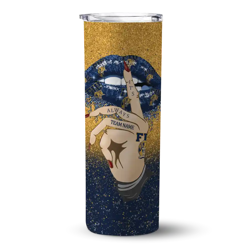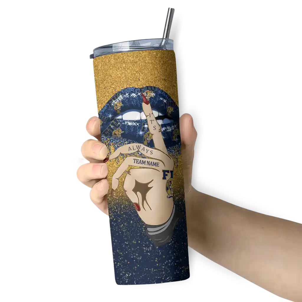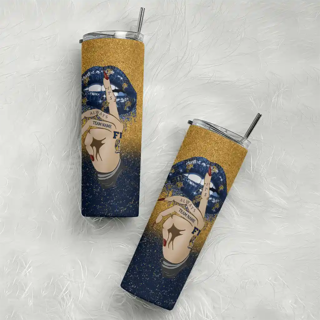 The Personalized FIU Panthers Sparkle Lips Blue Skinny Tumbler tumbler is the perfect way to stay refreshed while showing off your pride for FIU Panthers. With its double-wall insulation, your drinks stay at the right temperature for hours, whether you're enjoying a hot coffee or keeping your iced drink cold. What's inside? You’ll find 1 stainless steel tumbler, 1 clear lid, and 1 removable straw. It's the perfect blend of function and fan spirit! Ergonomically designed for comfort, made from durable stainless steel, and insulated to maintain your drink’s temperature, this tumbler is a must-have for any dedicated NCAA fan.