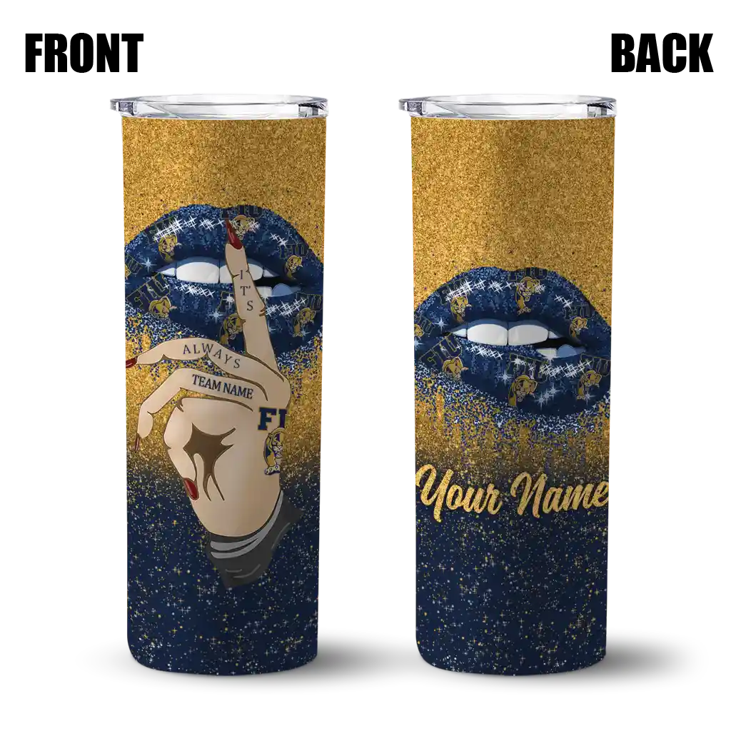 Personalized FIU Panthers Sparkle Lips Blue Skinny Tumbler