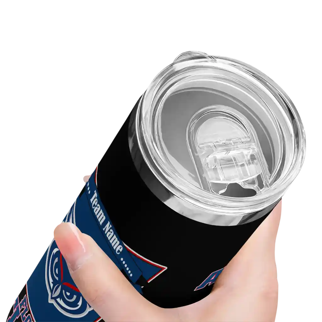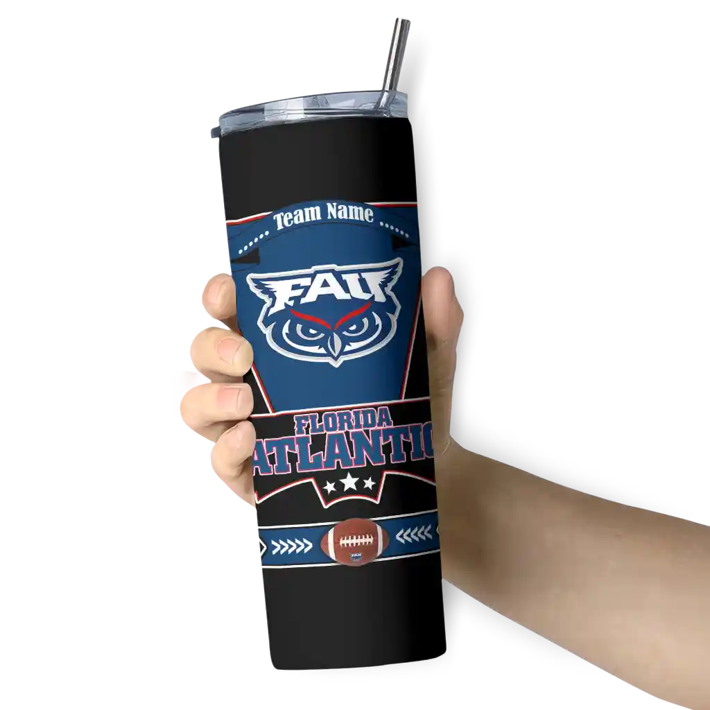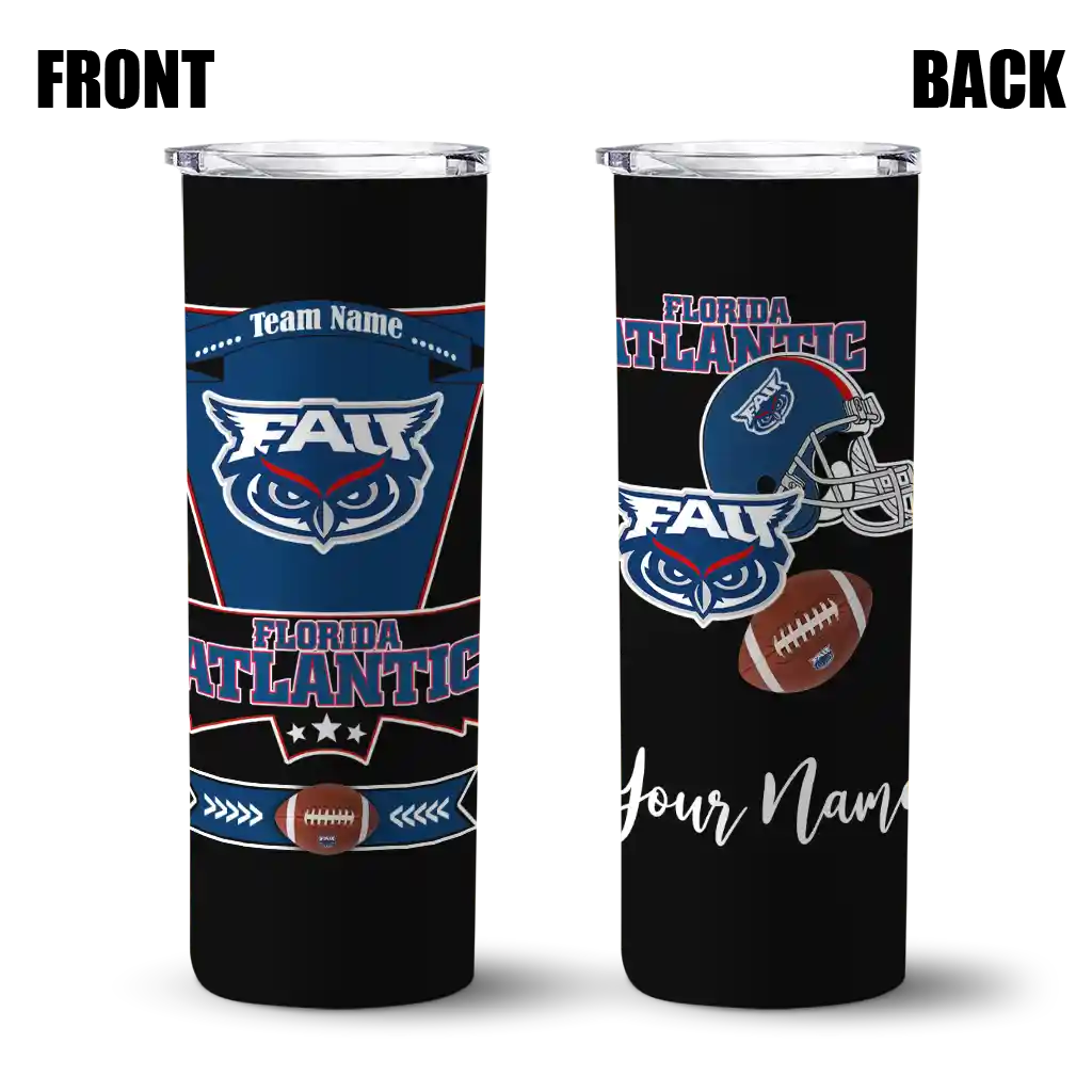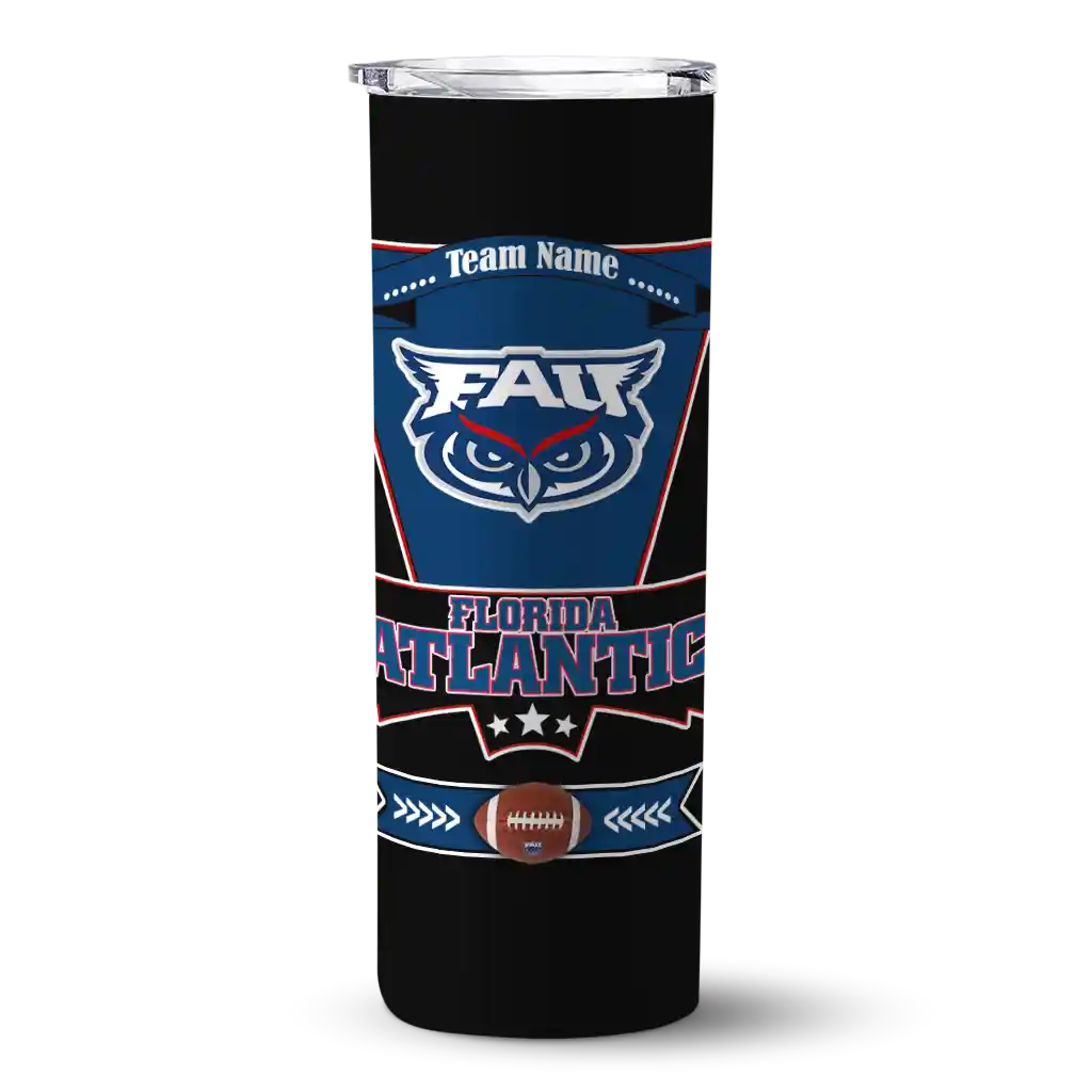 The Customized Florida Atlantic Owls Helmet Belt Blue Black Skinny Tumbler tumbler is the perfect way to stay refreshed while showing off your pride for Florida Atlantic Owls. With its double-wall insulation, your drinks stay at the right temperature for hours, whether you're enjoying a hot coffee or keeping your iced drink cold. What's inside? You’ll find 1 stainless steel tumbler, 1 clear lid, and 1 removable straw. It's the perfect blend of function and fan spirit! Ergonomically designed for comfort, made from durable stainless steel, and insulated to maintain your drink’s temperature, this tumbler is a must-have for any dedicated NCAA fan.