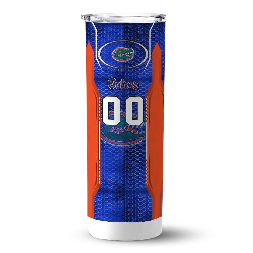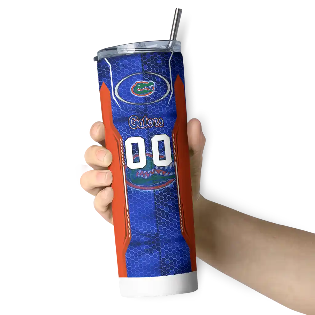 The Personalized Florida Gators Hexagon Honeycomb Blue Black Skinny Tumbler tumbler is the perfect way to stay refreshed while showing off your pride for Florida Gators. With its double-wall insulation, your drinks stay at the right temperature for hours, whether you're enjoying a hot coffee or keeping your iced drink cold. What's inside? You’ll find 1 stainless steel tumbler, 1 clear lid, and 1 removable straw. It's the perfect blend of function and fan spirit! Ergonomically designed for comfort, made from durable stainless steel, and insulated to maintain your drink’s temperature, this tumbler is a must-have for any dedicated NCAA fan.