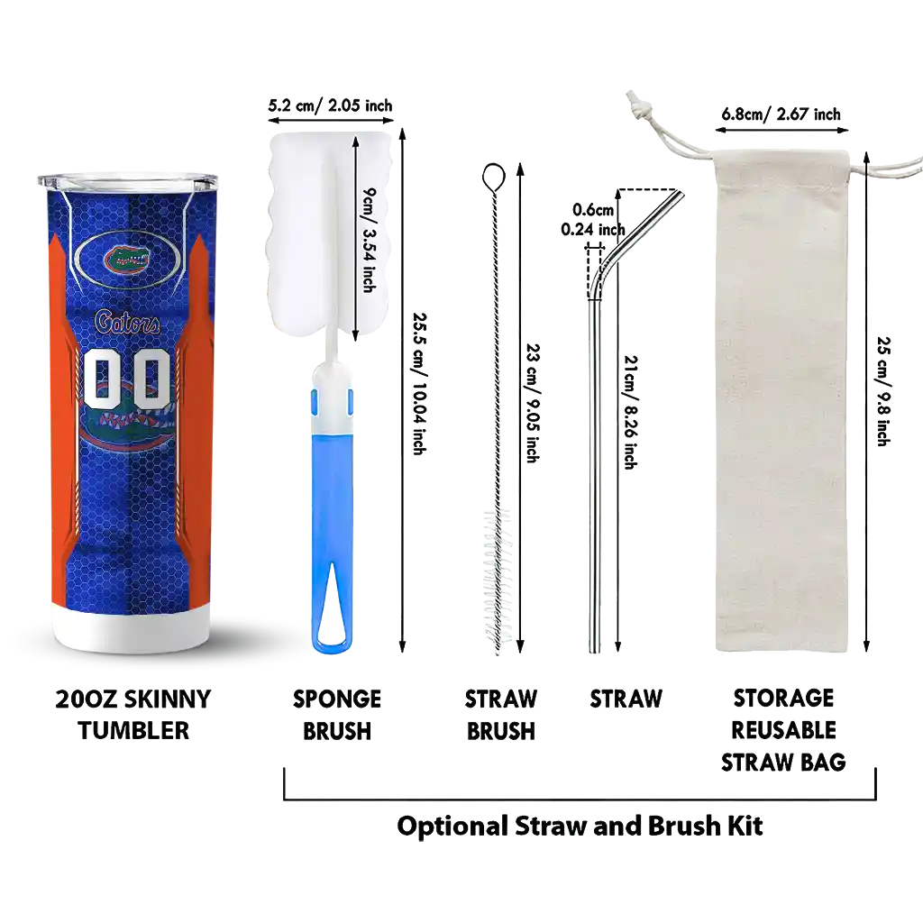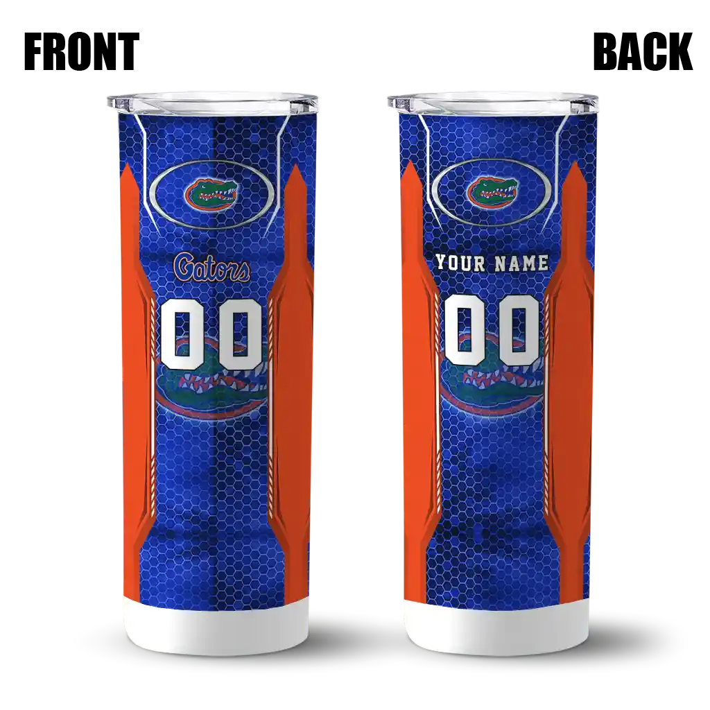 The Customized Florida Gators Stacked Diamond Blue Skinny Tumbler tumbler is the perfect way to stay refreshed while showing off your pride for Florida Gators. With its double-wall insulation, your drinks stay at the right temperature for hours, whether you're enjoying a hot coffee or keeping your iced drink cold. What's inside? You’ll find 1 stainless steel tumbler, 1 clear lid, and 1 removable straw. It's the perfect blend of function and fan spirit! Ergonomically designed for comfort, made from durable stainless steel, and insulated to maintain your drink’s temperature, this tumbler is a must-have for any dedicated NCAA fan.