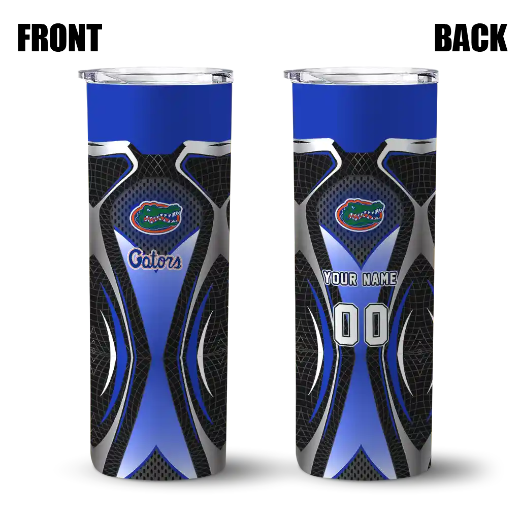 The Custom Florida Gators Zipper Leopard Blue Skinny Tumbler tumbler is the perfect way to stay refreshed while showing off your pride for Florida Gators. With its double-wall insulation, your drinks stay at the right temperature for hours, whether you're enjoying a hot coffee or keeping your iced drink cold. What's inside? You’ll find 1 stainless steel tumbler, 1 clear lid, and 1 removable straw. It's the perfect blend of function and fan spirit! Ergonomically designed for comfort, made from durable stainless steel, and insulated to maintain your drink’s temperature, this tumbler is a must-have for any dedicated NCAA fan.