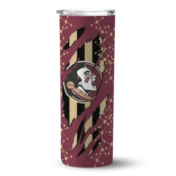 The Custom Florida State Seminoles Helmet Belt Garnet Black Skinny Tumbler tumbler is the perfect way to stay refreshed while showing off your pride for Florida State Seminoles. With its double-wall insulation, your drinks stay at the right temperature for hours, whether you're enjoying a hot coffee or keeping your iced drink cold. What's inside? You’ll find 1 stainless steel tumbler, 1 clear lid, and 1 removable straw. It's the perfect blend of function and fan spirit! Ergonomically designed for comfort, made from durable stainless steel, and insulated to maintain your drink’s temperature, this tumbler is a must-have for any dedicated NCAA fan.