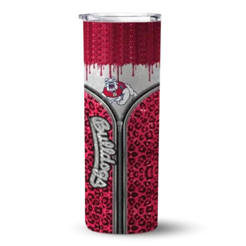 Customized Fresno State Bulldogs Sparkle Drip Red Skinny Tumbler $28.99
