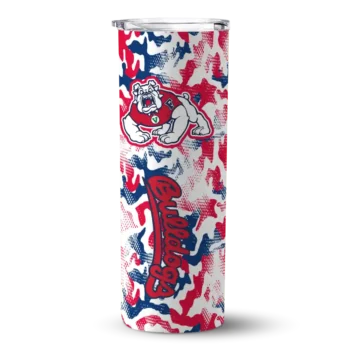 Personalized Fresno State Bulldogs Claw Marks Red White Skinny Tumbler $28.99