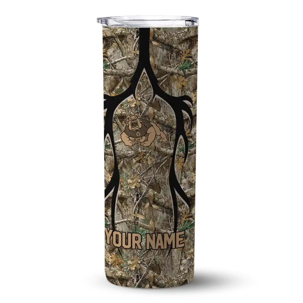 The Custom Fresno State Bulldogs Antler Flow Camo Skinny Tumbler tumbler is the perfect way to stay refreshed while showing off your pride for Fresno State Bulldogs. With its double-wall insulation, your drinks stay at the right temperature for hours, whether you're enjoying a hot coffee or keeping your iced drink cold. What's inside? You’ll find 1 stainless steel tumbler, 1 clear lid, and 1 removable straw. It's the perfect blend of function and fan spirit! Ergonomically designed for comfort, made from durable stainless steel, and insulated to maintain your drink’s temperature, this tumbler is a must-have for any dedicated NCAA fan.
