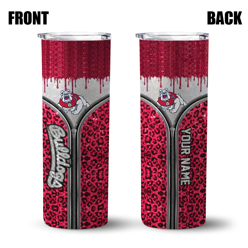 Customized Fresno State Bulldogs Sparkle Drip Red Skinny Tumbler