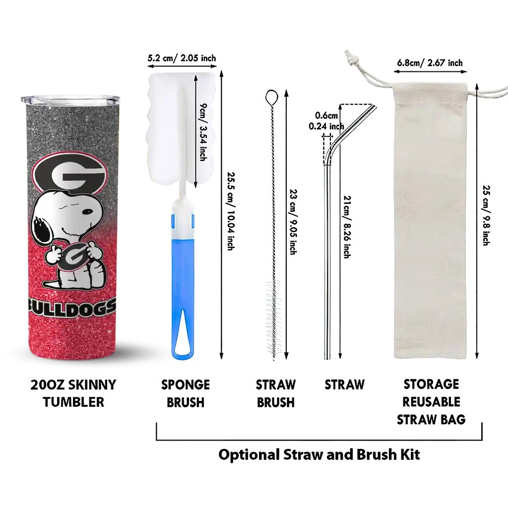 The Custom Georgia Bulldogs Snoopy Attitude Red Skinny Tumbler tumbler is the perfect way to stay refreshed while showing off your pride for Georgia Bulldogs. With its double-wall insulation, your drinks stay at the right temperature for hours, whether you're enjoying a hot coffee or keeping your iced drink cold. What's inside? You’ll find 1 stainless steel tumbler, 1 clear lid, and 1 removable straw. It's the perfect blend of function and fan spirit! Ergonomically designed for comfort, made from durable stainless steel, and insulated to maintain your drink’s temperature, this tumbler is a must-have for any dedicated NCAA fan.