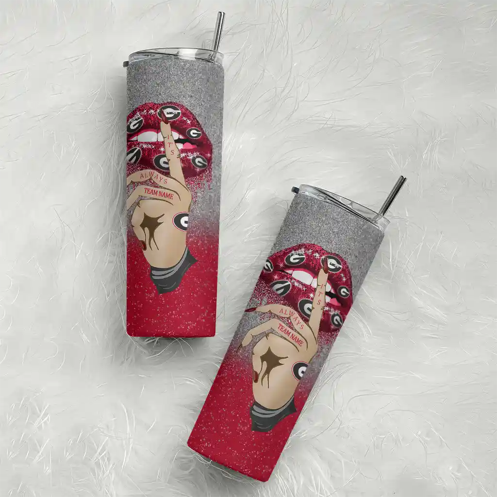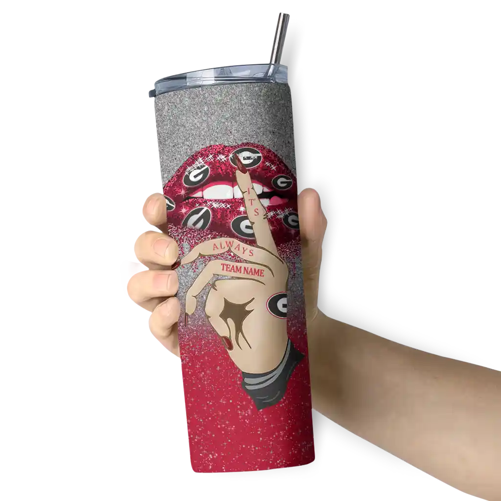 Personalized Georgia Bulldogs Sparkle Lips Red Skinny Tumbler