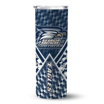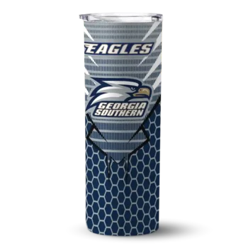 The Customized Georgia Southern Eagles Hexagon Honeycomb Blue Black Skinny Tumbler tumbler is the perfect way to stay refreshed while showing off your pride for Georgia Southern Eagles. With its double-wall insulation, your drinks stay at the right temperature for hours, whether you're enjoying a hot coffee or keeping your iced drink cold. What's inside? You’ll find 1 stainless steel tumbler, 1 clear lid, and 1 removable straw. It's the perfect blend of function and fan spirit! Ergonomically designed for comfort, made from durable stainless steel, and insulated to maintain your drink’s temperature, this tumbler is a must-have for any dedicated NCAA fan.